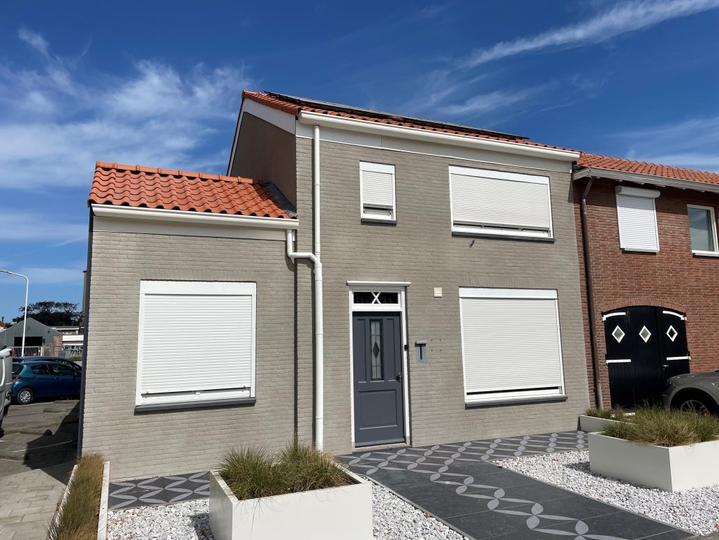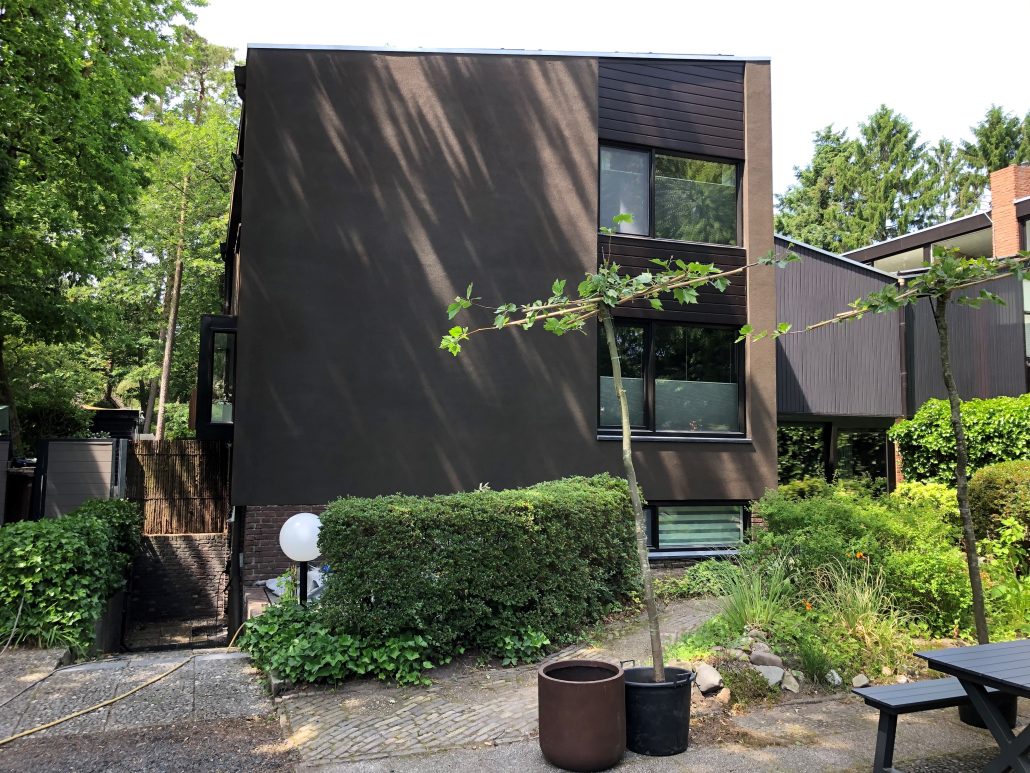 Spuitkurk is een hoogwaardige en duurzame gevelafwerking die uitermate geschikt is voor zowel renovatieprojecten als nieuwbouwwoningen. Het materiaal wordt rechtstreeks op de gevel gespoten en vormt een naadloze, elastische beschermlaag zonder voegen of naden. Deze laag is waterafstotend en tegelijkertijd dampopen, waardoor regen en vocht van buitenaf geen kans krijgen terwijl de muur kan blijven ademen. Dit voorkomt vochtproblemen, schimmelvorming en afbladderende gevels, waardoor de levensduur van de woning aanzienlijk wordt verlengd. Spuitkurk hecht uitstekend op vrijwel alle ondergronden, is scheuroverbruggend en vereist nauwelijks onderhoud. Daarnaast geeft het de woning een frisse, verzorgde en moderne uitstraling die jarenlang mooi blijft.